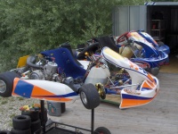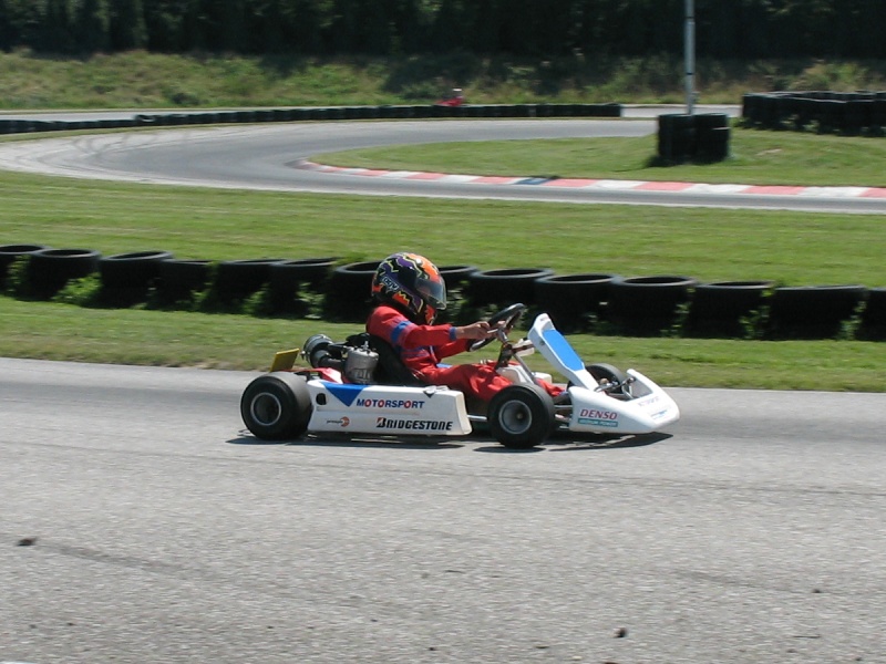 unterteilt werden: Die „4-Takt Gang“ mit ihren 390er Motoren von Honda bestanden aus: Markus Uhrmann, Sepp Schiermeier, Michael bzw. Herbert Grubmüller, Daniel und Franz Gruber. Fabian versuchte sich außerdem erstmals auf seinem neuen Gold Schaltkart. Was am Anfang gar nicht so leicht war, weil sich das Schaltkartfahren doch wesentlich vom „normalen“ Kartfahren unterscheidet. Schon alleine die ganzen Schaltvorgänge fordern dem Fahrer einiges ab. Auch ist es nicht ganz so einfach die ganze Power so eines „Gefährts“ zu kontrollieren. Ein Schaltkart ist eben doch das Non-Plus-Ultra im Rennkartsport und bedarf ausgiebigen Testfahrten. Etwas Pech, schon am ersten Tag, hatten die Webers, weil nach den ersten Testrunden bei Werner die Bremsscheibenaufnahme riss. Somit war ein weiterfahren nicht möglich. Ein Besuch beim Prespo wegen Ersatzteile brachte leider auch keinen Erfolg. Somit blieb ihnen leider nur das zuschauen. Für Simon Scheibenzuber war es auch einer der ersten Einsätze
